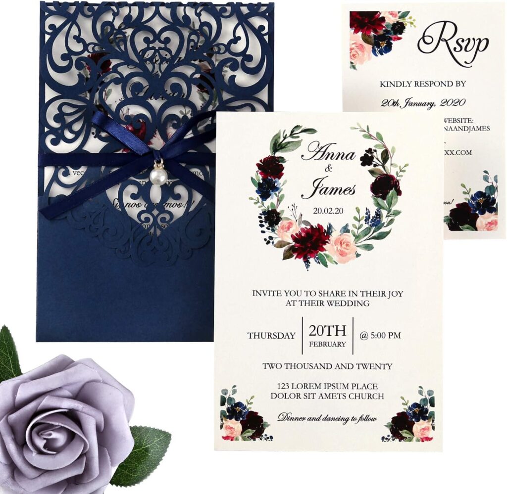 1. Traditional Elegant Invitation: A traditional wedding invitation can never go out of style. It usually features a formal font, an ivory or cream-colored paper, and a classic design.